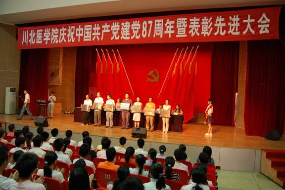 6月27日下午,我院庆祝中国共产党建党87周年暨表彰先进大会在世纪会堂隆重召开,热烈庆祝中国共产党诞辰87周年,总结过去一年学院党建等各项事业发展所取得的成绩,表彰在为推进学院发展以及在最近波澜壮阔的抗震救灾斗争中涌现出来的先进基层党组织、优秀共产党员、优秀党务工作者,进一步激励全院党员干部和广大群众,发扬党的优良传统,弘扬抗震救灾精神,为开创学院发展新局面而努力奋斗。学院党委书记凌保东、院长康健、副院长鄢佳程、李健、周京国、杜勇、院级调研员张春霞、党办、院办主任胡春梅主席台就座,学院党委常委、副院长鄢佳程主持会议,党委书记凌保东作重要讲话。全体教师党员、部分学生党员700余人参加。