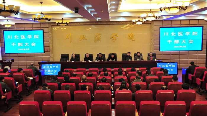 3月5日下午,学校在顺庆校区科技楼9楼会议室召开新学期干部大会,部署我校2015年重要工作,并对开展工作提出要求。全校副处级以上干部参加会议,会议由校党委副书记杜勇主持。