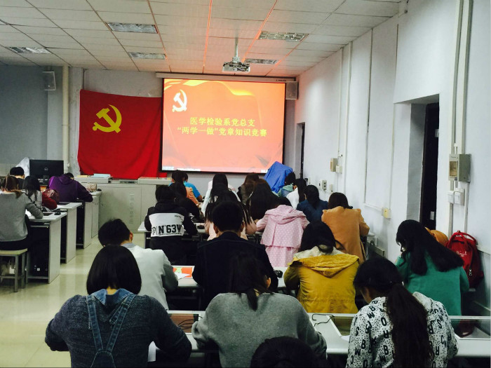 为推进“两学一做”活动的常态化开展,充分调动学生党员学习党章、党规的积极性,全面提高学生党员的素养,医学检验系党总支于近期在顺庆校区实验大楼四楼多媒体教室举行了党章知识竞赛,该系党总支副书记王帅亭子、全体学生党员及入党积极分子参加了此次活动。