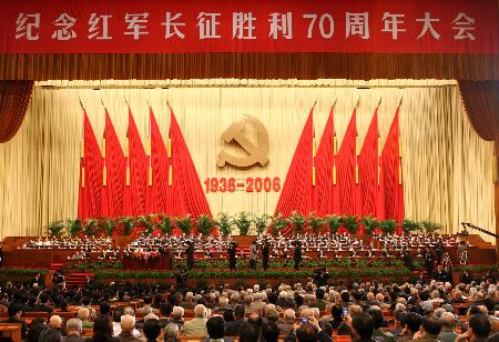 纪念红军长征胜利70周年大会今日上午10时在人民大会堂举行,中共中央总书记、国家主席、中央军委主席胡锦涛发表重要讲话。