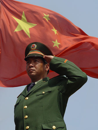 庄严的旗帜,接受着人民功臣庄严的军礼!