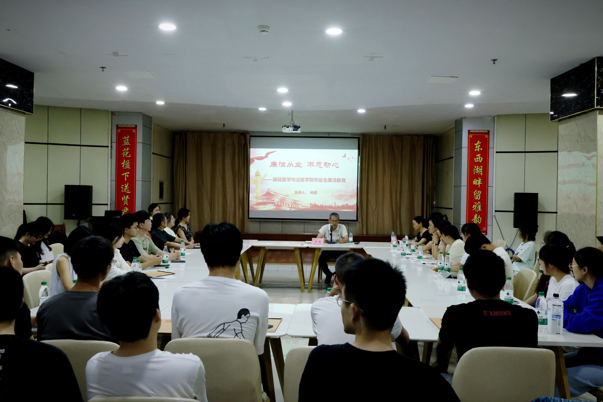 为加强毕业生思想教育引领,落实立德树人教育实效,6月20日,基础医学与法医学院院长杨健以“廉洁从业 不忘初心”为题,为2025届法医学专业毕业生讲授以廉洁教育为主题的最后一堂思政教育课。