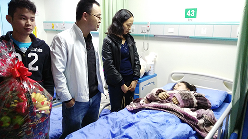 10月29日下午,曾恩泉副书记、杜冰副主任前往我校附属医院新区看望了因病住院手术的李欣恒同学,并代表学校和系部送去了慰问金。