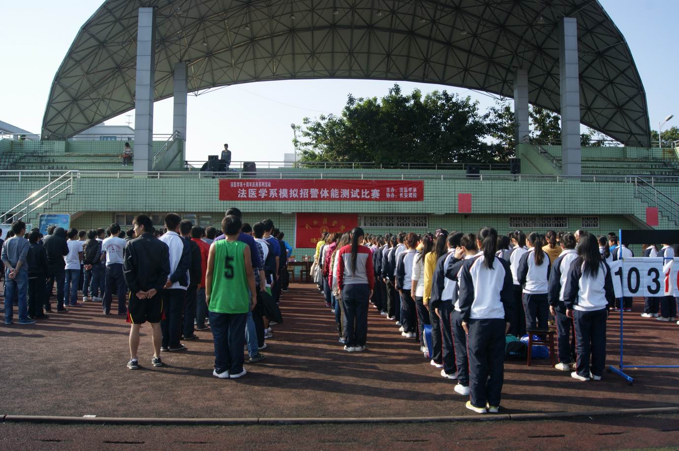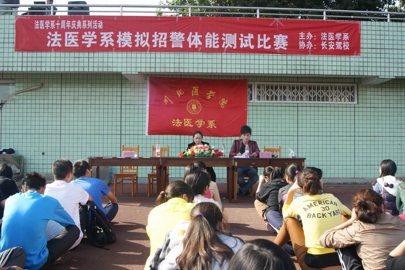 今年是我系建系十周年,以此为主题,我系开展了一系列庆祝活动。为增强同学们强身健体的意识,巩固专业思想,结合我系专业特点,11月17日下午,由团总支学生分会承办的第四届“模拟招警体能测试”比赛在新区足球场举行。与以往不同的是,本次比赛不单有我系的100余名同学参加,还有来自全院的200余名同学的加入。