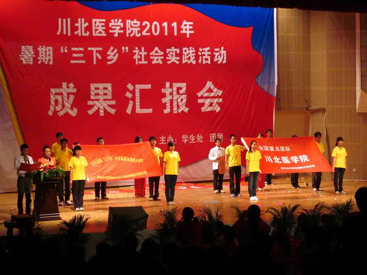 10月20日下午,我校2010-2011学年国家奖学金竞评大会在顺庆校区举行。我系2008级李永鑫同学自入校来,勤奋好学、自强不息,不断提高自身综合素质,三年磨一剑,在本次竞评中获评委小组的认可,以全校第五的优异成绩获本年度国家奖学金!在11月3日举办的暑期“三下乡”社会实践“十佳团队”竞选中,四川省高校唯一全国重点团队,我系学生科副科长金波指导带队、2008级李思思同学组建的“赴重庆永川青峰镇医疗卫生服务队”,以其严密的前期准备,丰富的工作经历,丰硕的下乡成果,精彩的现场报告,获得校“十佳团队”的荣誉称号!
