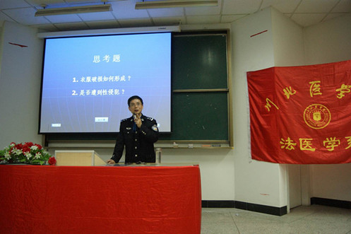 继去年成功举办“细节铸就成败,点滴破解谜团” 第一次讲座,同学们对兵临第一线的公安法医工作者充满了向往和敬佩,同时也从中获取丰富的专业知识,培养专业素养,牢固专业思想,今年韩治斌老师带来以“如何利用生活常识 破解身源范围”为主题的系列讲座之二,从“钥匙开启的信息”、“解读残存的白网鞋”、“碎石中埋尸体”、“坑中大便说死因”四个案件入手,深入浅出的为同学们讲解法医在案件现场所需完成的工作和平时需要积累的知识,特别解读了生活常识对确定未知名死者身源范围所起的关键性作用。案情扑朔迷离,结果不可思议;一滴水中见阳光,一粒沙里察世界,韩治斌老师将复杂的案例与简单的生活常识联系起来,给同学们无限的启示。