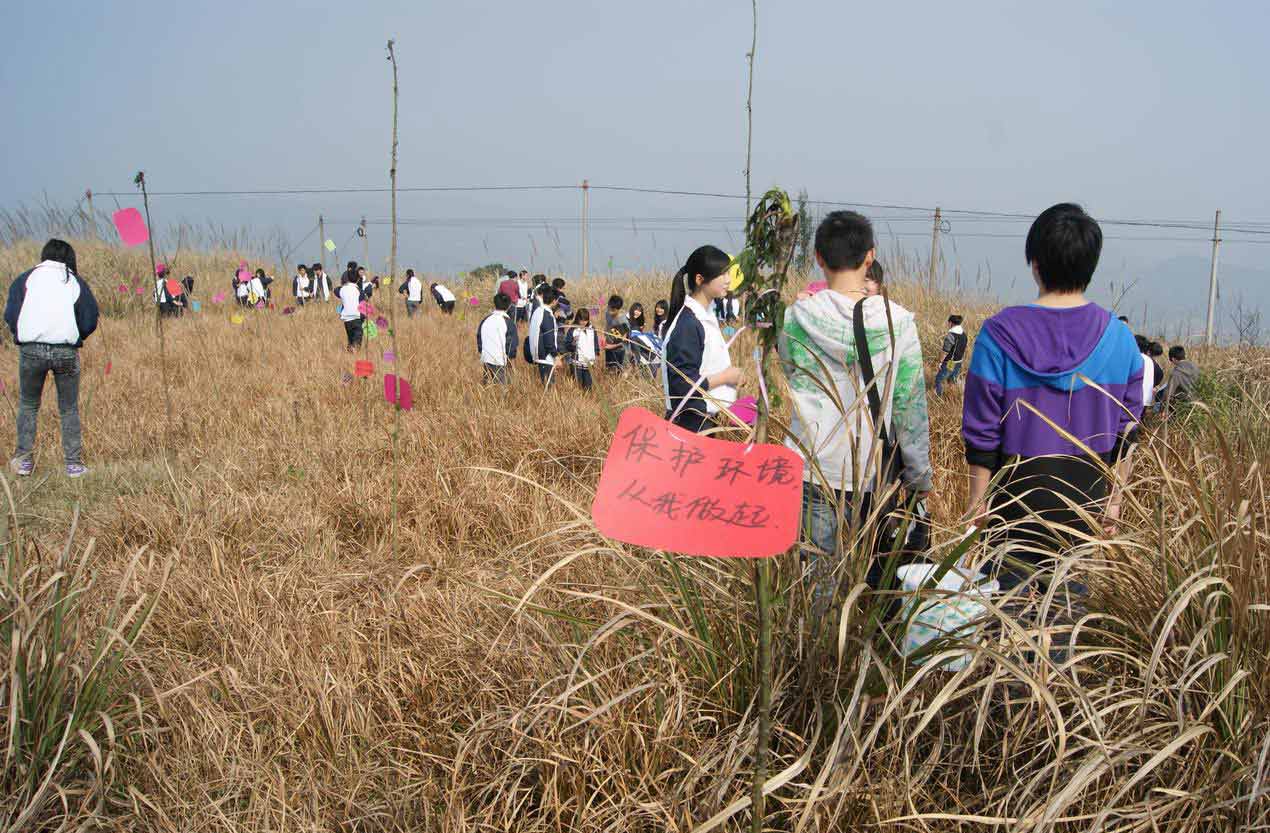 活动伊始,大家劳动起来,你追我赶,都不愿意示弱。山坡上锄头此起彼伏,抡起完美的半圆,锄草、挖坑、栽种、回填、灌水……明媚的阳光照耀下,处处都是同学们忙碌的身影,晶莹的汗水随着他们的动作洒在地上,记录着这一次难忘的活动。不多时,原本荒草丛生,破败凋敝的无名荒山,整齐的立起了一棵棵稚嫩的树苗。同学们纷纷在自己亲手栽种的树苗前合影留念,并相约每年都要来看看这见证成长的青青小树。