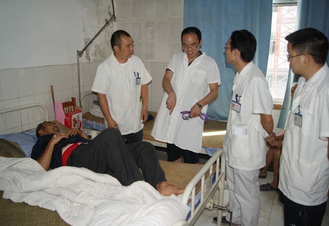 我团随队医师,川北医学院附属医院普外科硕士李德新结合自身专业特色,围绕“微创外科”中最新的理念,做了题为“肝叶切除联合术中胆道镜治疗复杂肝内胆管结石”的讲座,介绍肝内胆管结石、胆结石等疾病的微创手术疗法,强调微创理论及微创技术在现代治疗手段中的优越性及越来越重要的地位。李德新医师还结合手术视频,就如何在腹腔镜下进行肝叶切除术和保胆取石手术进行详细讲解。院长姚长胜介绍,受基层医疗卫生硬件设施的限制,很多治疗技术无法开展,他对微创手术表现出极大的兴趣,希望通过交流和学习,得到更多的支持和指导。会后李德新医师在卫生院同志的陪同下,深入住院病房查看病人,并就具体病例进行了讨论和交流。
