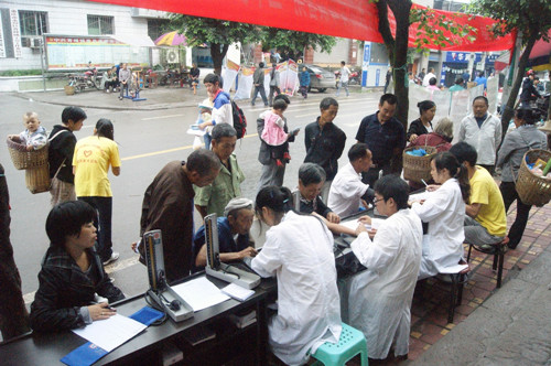 体检中最忙的两天要数7月10日和13日,这两天正是青峰镇“赶场”的日子。老天似乎也和我们开了个玩笑,10日骄阳似火,13日却细雨蒙蒙,气温陡降近10度,这些都未能影响我们的志愿服务,队员们坚持完成预定任务,风雨无阻。通过几天的免费体检和健康咨询,我们了解到农村居民中普遍存在两种情况:一是健康意识比较淡薄,二是害怕在医院做检查花钱,导致小病不重视,大病不能治。在凌阁堂村,今年61岁的杨大爷最近总是感觉容易劳累,晚上睡觉总是要垫很高的的枕头才能睡着,他以为这是上年龄的正常反应,没有引起重视。队员为杨大爷检查时,听诊肺部有明显的气肿征象,结合他有近50年吸烟史,随队医师初步诊断他可能患有慢性阻塞性肺病,进一步检查时发现存在下肢的水肿,已经发展到肺心病的阶段,遂建议他马上去医院作进一步的检查,及时治疗。类似杨大爷的情况在农村非常普遍,身体已经出现异常信号,但由于健康意识的淡薄和知识的欠缺,总是熬到身体实在吃不消的时候才去医院就诊,这时已经错过了最佳的治疗时机。有鉴于此,队员们除了完成检查、咨询、宣讲,还会随时叮嘱各位农民朋友,特别是那些检查身体有异常的乡亲,一定要重视自己的健康状况,感到身体不适尽快就医诊治,同时着重宣传健康的饮食习惯和生活方式,为勤劳淳朴的乡亲们带去正确的健康理念,推动基层公共医疗卫生事业的发展。