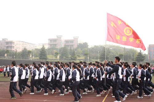 法医学系2014级一班和2016级一班代表我系参赛,经过近一个月坚持不懈的训练和准备,法医学子在赛场上精神抖擞,气宇轩昂。大家喊出了“四海之外,相聚一脉,川北法医,相亲相爱”的口号,体现出法医学子们团结一致的精神。整齐的步伐,规范的动作,博得了评委的认可。最终同学们的努力换得了丰硕的成果,法医学系两只队伍双双斩获“优秀奖”。