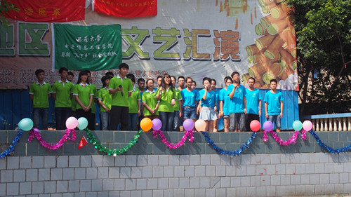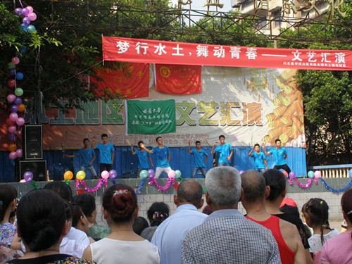 7月18日上午,川北医学院法医学系赴北碚水土镇社会实践服务团携手西南大学电信学院下乡团队,共同在水土镇黄金堡广场九龙社区展开文艺汇演。活动中,九龙社区党支部书记何小莉,社区居委会主任蒋冬梅,团委书记肖中立等政府领导以及数百水土镇乡亲前来观看表演。