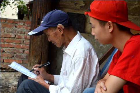 也许是出于本能的防卫意识,刚开始村民们对我们还不能接纳,淡淡的不信任感甚至拒绝受访让队员们感到沮丧、失落,但大家仍然振作精神,耐心的,不厌其烦的,一遍又一遍的给村民们介绍我们的志愿工作和目的,努力终得到回报,渐渐的越来越多的村民愿意配合我们的宣传与调查,甚至把外出打工的家人的情况也一股脑儿的提供了出来。