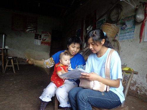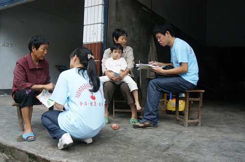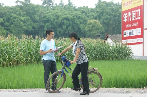5日至6日,问卷调查和宣传集中在花桥镇开展。花桥镇地处交通要道,经济较发达,人口稠密,比普通的镇子大上不少,团队采取分组走访的形式开展工作。调查采取随机抽样的方式,不论性别、年龄、职业,队员们或走访行人,或上门宣传,充分发挥着主观能动性,接受调查的镇民从最初微有防范或抵触,到逐渐认同进而主动配合,与队员耐心细致的讲解和坚持不懈的努力密不可分:热心肠的大爷叫来身边的朋友、亲戚,一起填写问卷;过往的三轮车师傅特地停下车来主动索要问卷和宣传资料;活泼的小朋友拿着问卷和宣传资料问着各种问题,让队员们也过了一把教师瘾。