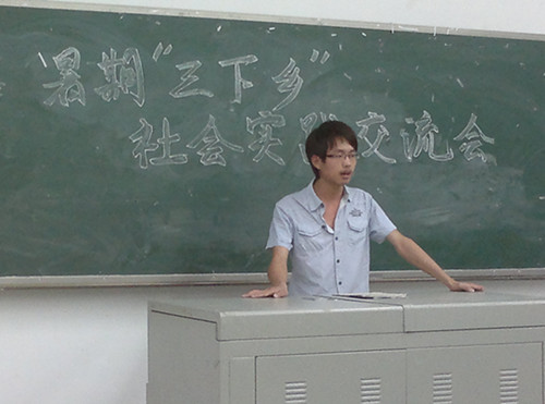 金波老师就“三下乡”的一些问题作了补充,强调要处理好团队和个人的关系,并简单介绍了我校学生科研课题立项的背景,鼓励同学们积极参与,将“三下乡”、社会实践与科学研究有机结合起来。