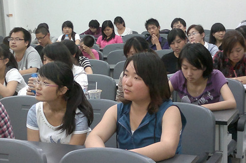 09级钟彬成功组建了2011年全校“三下乡”规模最大的一支队伍并顺利完成所有计划任务,他向同学们详细讲解了策划、筹备、预调查、具体实施、总结、参评等一系列的工作环节,特别强调充分做好前期的准备和策划工作。
