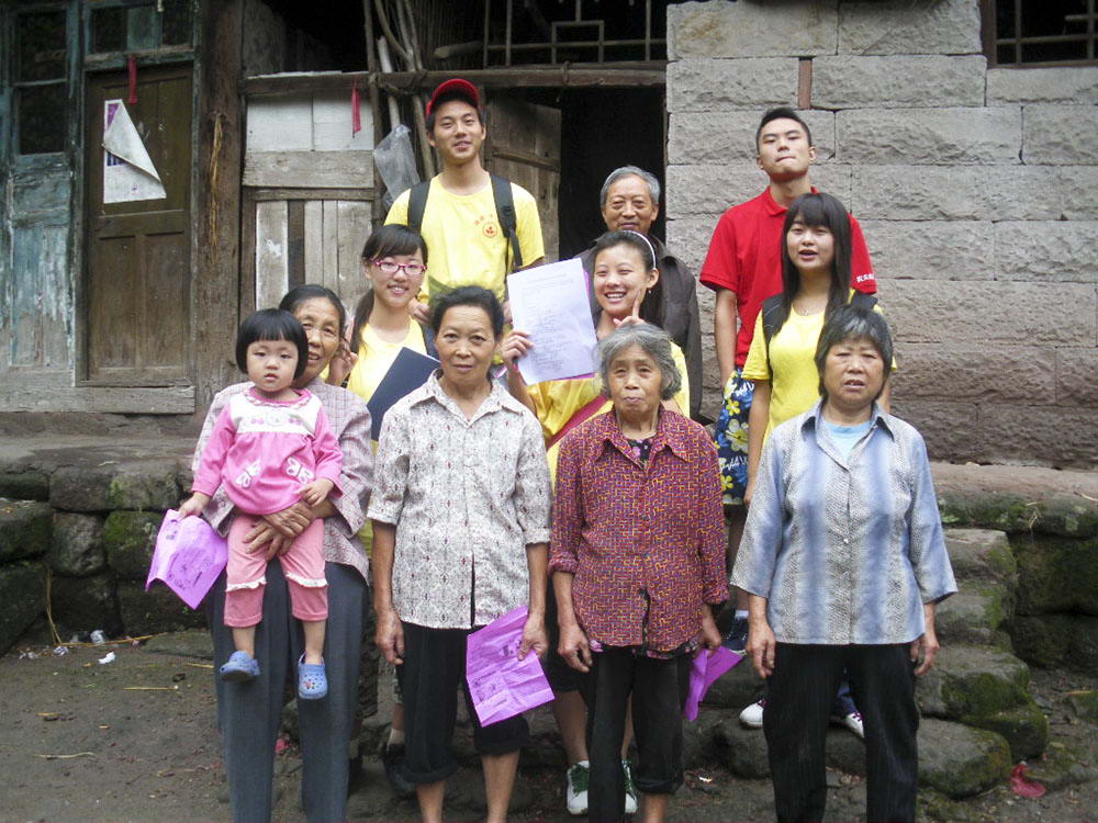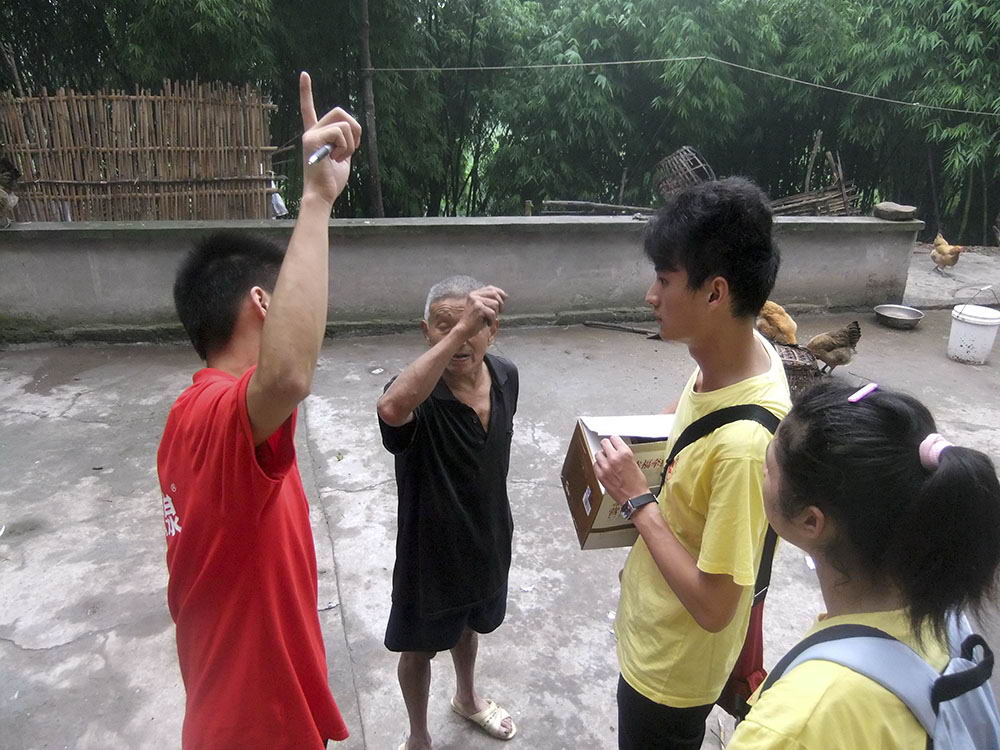 调采组三个小组则分别深入到中心镇秀观村、南门坎村、林山村、龙王村和南溪油房村等各大小村庄。由于昨日阵雨不断,路上还很泥泞,可是各组队员都干劲十足,走家串户行进了5、6公里。一些村民起初见到一大队人都心存戒备,当听说队员们是来采集他们的水做检测时他们非常欢迎。看到队员们辛苦的从井里舀水或者山上的水源地取水采集样品弄得一身泥时,村民们纷纷前来帮忙。在村民们积极的配合下,队员们都圆满的完成了采集水样的任务。队员们在沿途的居民家中和他们一起聊家常,询问他们的饮用水情况并一遍遍解释向他们宣传的如何健康饮用水的知识。许多人文化程度低不了解问卷的知识,队员们就想尽办法用通俗易懂话转诉。当地居民对队员们的努力非常赞赏,一位老大爷深情的说“你们大学生利用假期来我们这里搞活动,我们一定支持,早就盼望有人来检测一下我们的水安全不安全了”。经过约五个小时的走访采样和问卷调查,大家对该地区的饮用水情况有了大致的了解。等到队员离开时,村民们依依不舍,纷纷拿出家中的水果和特产送给队员们。至中午时分,各组队员们都按时按质按量完成了任务。