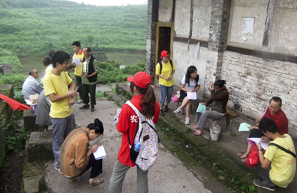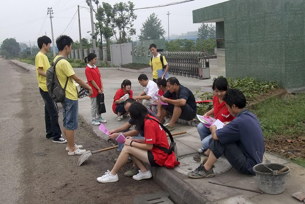早上7点20分,队员们在各调采小组组长的带领下准时出发。全体队员有秩序的乘船渡江后,三个调采小组分别去到了街子镇郭家村、天印村、皂角垭村,中心镇园艺场和旧县乡等地。雨过天晴,整个队伍生机勃勃,队员们都干劲十足。一路上,队员们边采集水样边向当地群众做问卷调查。调查开始的时候,部分村民因不了解队员们的意图而拒绝配合,但经队员们耐心解释后,村民们都积极的配合并参与到问卷调查中。队员们不仅耐心的一遍遍的向当地群众宣传健康饮水的知识,还尽力帮助有困难的老人。