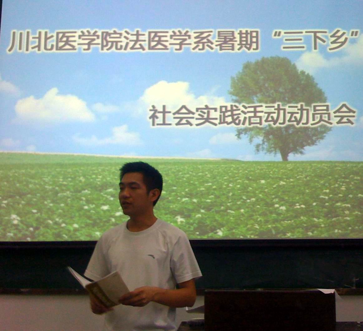 迎合着川北医学院暑期“三下乡”感恩社会实践服务活动行动的奏响。7月12日晚19:00点,我系2010年暑期“三下乡”赴南充城乡消费社会实践服务队动员会与顺庆校区专业教室举行。