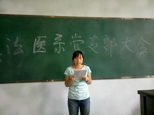 2011年5月19日上午10点半,基础医学院党总支第八支部暨法医学系党支部在第二教学楼203教室召开支部大会。本次大会的主题一是讨论接收预备党员和预备党员转正,二是组织学习胡锦涛总书记在庆祝清华大学校庆100周年的重要讲话。大会共有29名正式党员、18名预备党员和5名预备党员候选人参与,大会过程中,各年级发展对象及预备党员依次上台发言,汇报个人在预备/考察期的学习、工作和对党的认识等基本情况,发言完毕后由所有正式党员举手表决,本次大会在我系师生党员的积极配合下,本着公平公正的原则,严格按照党的规章制度进行,杨小力等5名发展对象和左强等5名预备党员都全票通过。随后由学生党务工作者组织学生党员同志学习胡锦涛总书记在庆祝清华大学校庆100周年的重要讲话,重点学习了高校教育“培养什么样的人”和“怎样培养人才”等内容,同学们对胡总书记在讲话中提出的要求和希望都感触颇深,更坚定了努力学习科学文化知识,提高思想道德素质修养,理论联系实践,不断完善自我、发展自我的信心和决心。