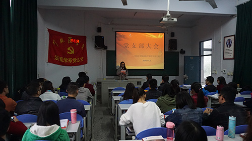 为深入学习党章,贯彻落实十八届六中全会精神,2016年11月2日下午,法医学系学生党支部在顺庆校区201教室召开了党支部大会,法医学系党总支副书记曾恩泉,学生党支部书记金波和法医学系全体党员及预备党员参加了本次大会。