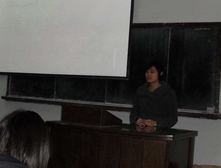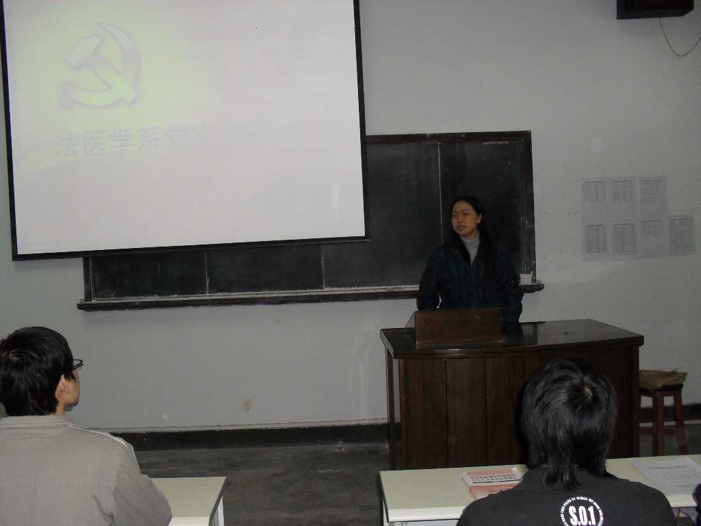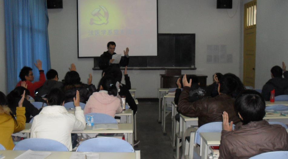 2009年11月18日上午10:30,我系在专业教室召开党支部全体党员大会。本次大会由2007级邓小冬同志主持,共53人参加,其中25名正式党员,占应到党员人数的93%,党支部书记杜冰同志,支部委员曾恩泉同志、金波同志,辅导员徐东东同志出席大会。大会首先由周美新、肖涛等15名同志向与会党员汇报转正申请,再由孙红梅、戢焕明等12名同志向与会党员汇报入党申请。他们分别对自己在考察期间的思想、学习、生活、工作等方面做了详细汇报。随后由到会的25名正式党员同志对以上27名同志的转正和入党申请进行考察并举手表决,最终所有同志全部以全票通过。最后,我系党支部书记杜冰老师对本次大会进行了点评和总结,她赞扬了此次会议的组织工作,鼓励同志们再接再励,言行一致,在思想、学习、工作、生活等方面体现党员的先锋模范带头作用。