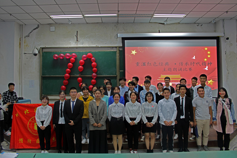 为更好推进预防医学系“不忘初心 牢记使命”主题教育开展,激励当代大学生传承革命精神,弘扬时代精神。近日,由川北医学院预防医学系党总支主办,第十一届预防医学系团总支学生分会承办的“重温红色经典,传承时代精神”主题朗诵活动于图书信息大楼402举行。预防医学系全体在校生以班级为单位参与了本次活动。