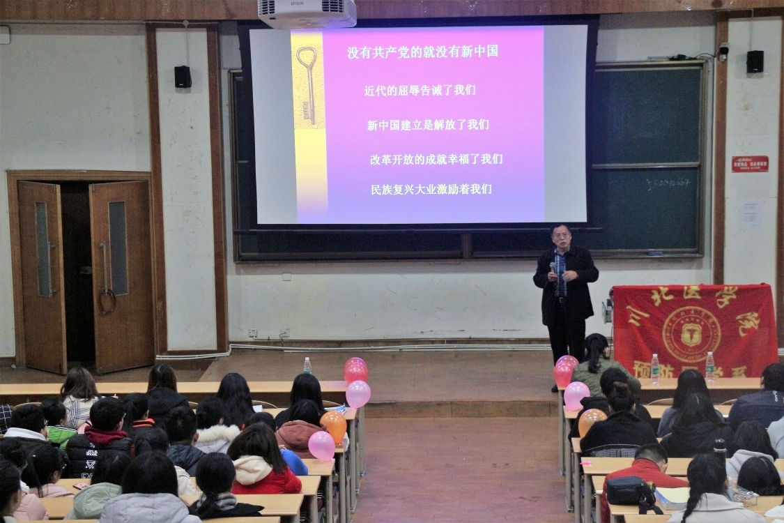 “红色生日会”是预防医学系党总支创新开展的支部组织生活形式,以红色生日会的形式为一位优秀党员庆生,时刻提醒党员发挥先锋模范作用。预防医学系党总支自2016年开创了红色生日会这个院系党建品牌并常年坚持开展,12月5日于北102教室举办了新一期教师党员“红色生日会”,特邀川北医学院原副院长李健教授担任党员嘉宾,预防医学系敬媛媛、潘秋予老师,预防医学系在校学生党员、预备党员、入党积极分子及全体大一、大二学生共200余人参与了本次活动。