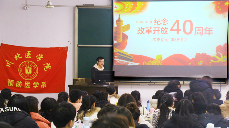 2018年是改革开放40周年,12月21日下午,预防医学系在川北医学院高坪校区12教室举办庆祝改革开放40周年学生活动,预防医学系2017级120余人满怀豪情,参与到该活动中。