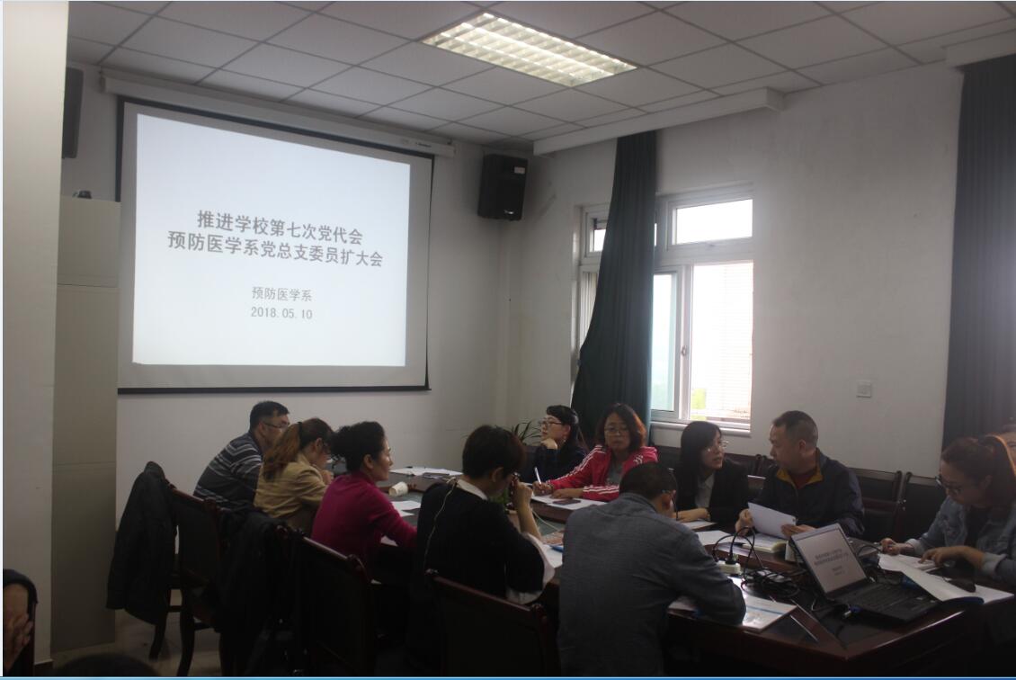 按照学校党委关于第七次党代会的有关要求和统一部署,5月10日下午五点,预防医学系党总支在本系会议室召开了总支委员扩大会,总支委员和支部书记参加,会议由预防医学系党总支副书记林锋主持。