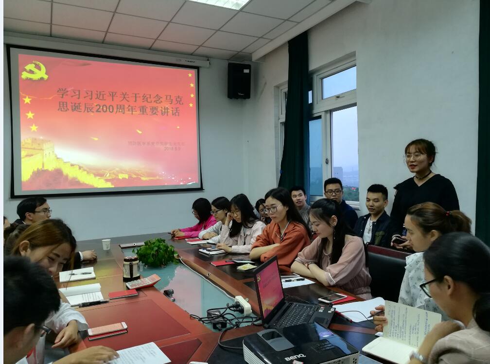 5月9日晚,川北医学院预防医学系学生党支部于系会议室开展“学习习近平关于纪念马克思诞辰200周年重要讲话”主题党日活动,活动由学生党支部书记杨友静主持,学生党支部全体成员参加。