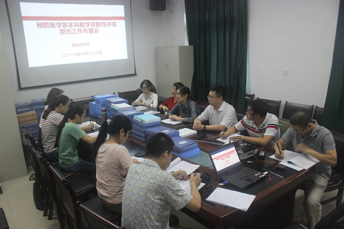 9月29日上午,预防医学系在系会议室召开诊断性评估整改工作布置会,系副主任高晓凤,系党总支副书记赵梓雯,教务科、各教研室主任、秘书以及实验教学中心全体教师参加此次会议,会议由高晓凤副主任主持。