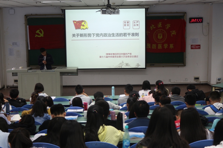 此次活动,我系入党积极分子参与活动中的互动环节,积极正确回答了有关党史党迹的基本问题充分展现了我系学生丰富的知识储备。田禾苗和廖莉莎同学分享了参加“党员微党课”的心得和体会。预防医学系党总支副书记赵梓雯要求全系学生党员要自觉学习党规党章,学习习近平总书记的系列讲话精神,高度重视学风建设,处处起模范带头作用,做一名合格党员。