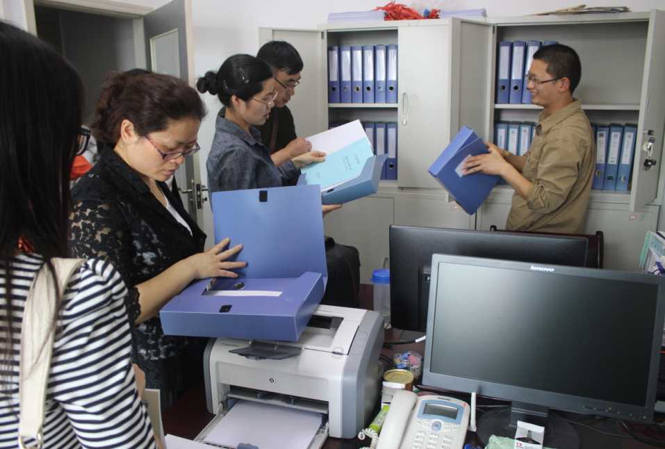 为推进我系“本科教学工作审核评估”支撑材料的组织、整理工作,我系组织专家于2015年4月16日下午对各教研室、实验中心及教务科的档案材料准备情况进行了检查,详细了解各科室在材料准备工作中所遇到的问题和困难。检查组成员对资料准备工作中发现的问题进行了总结,献计献策,提出了一些很好的建议和意见。我系高晓凤副主任肯定了各科室在前一阶段所做的工作,要求各科室尽快完善各类档案材料,尤其是要抓紧时间编制本专业各门专业课程的课程标准;党总支赵梓雯副书记要求大家行动起来,分工合作,收集材料,不定期召开碰头会,为撰写自查报告做好准备。