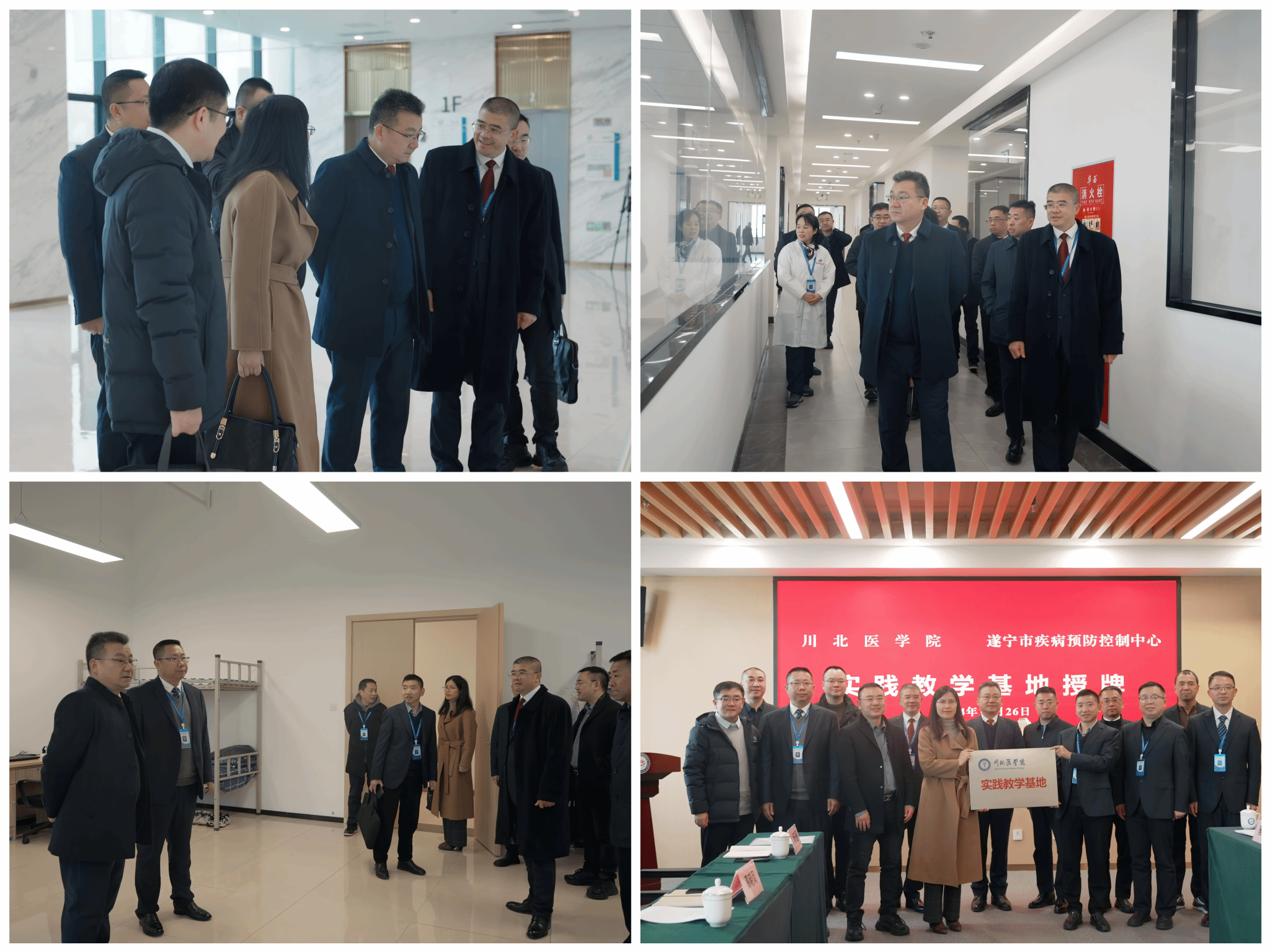 12月26日上午,学校党委常委、副校长何永斌带领教务处、公共卫生学院相关负责人前往遂宁市疾病预防控制中心进行实地考察,并出席与该中心共建实践教学基地的授牌仪式。遂宁市政府办、卫健委、疾控中心相关负责人陪同考察。