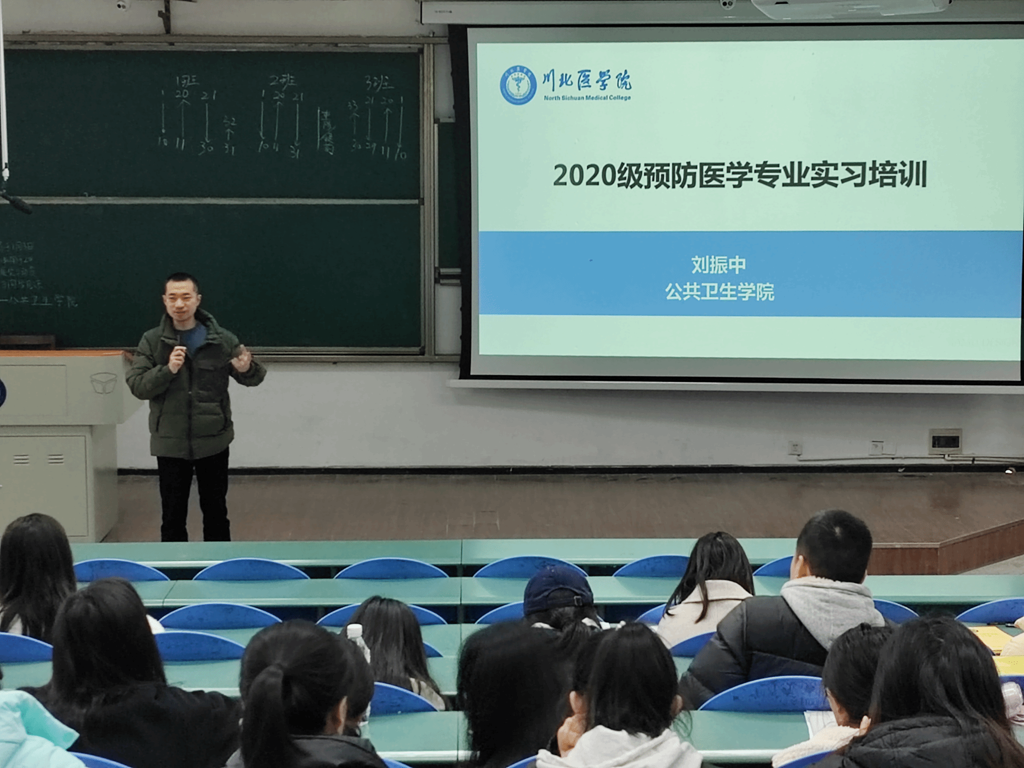 会上,刘振中围绕预防医学专业实习对个人职业发展的重要性,为在场学生开展了动员讲话及实习前注意事项培训。他依据过往学生的实习经验,详细阐述了预防医学专业实习的重要意义,讲解了实习报到时的各项准备事项,并对实习期间的学习规划与生活安排给出了宝贵建议。刘振中勉励学生通过专业实习,能在专业技能上有所精进,同时在意志品质上得到锤炼,并预祝学生在实习期间都能收获宝贵的经历。