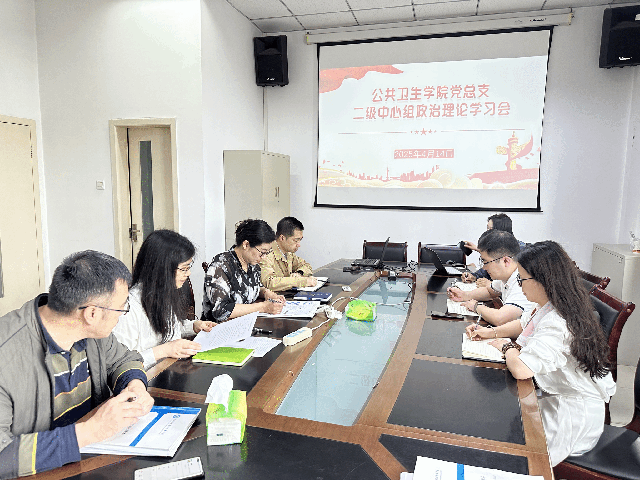 4月14日上午,公共卫生学院在病原中心4楼会议室召开了2025年第3次二级中心组理论学习会,中心组全体成员参加了会议。会议由公共卫生学院党总支书记、院长高晓凤主持。