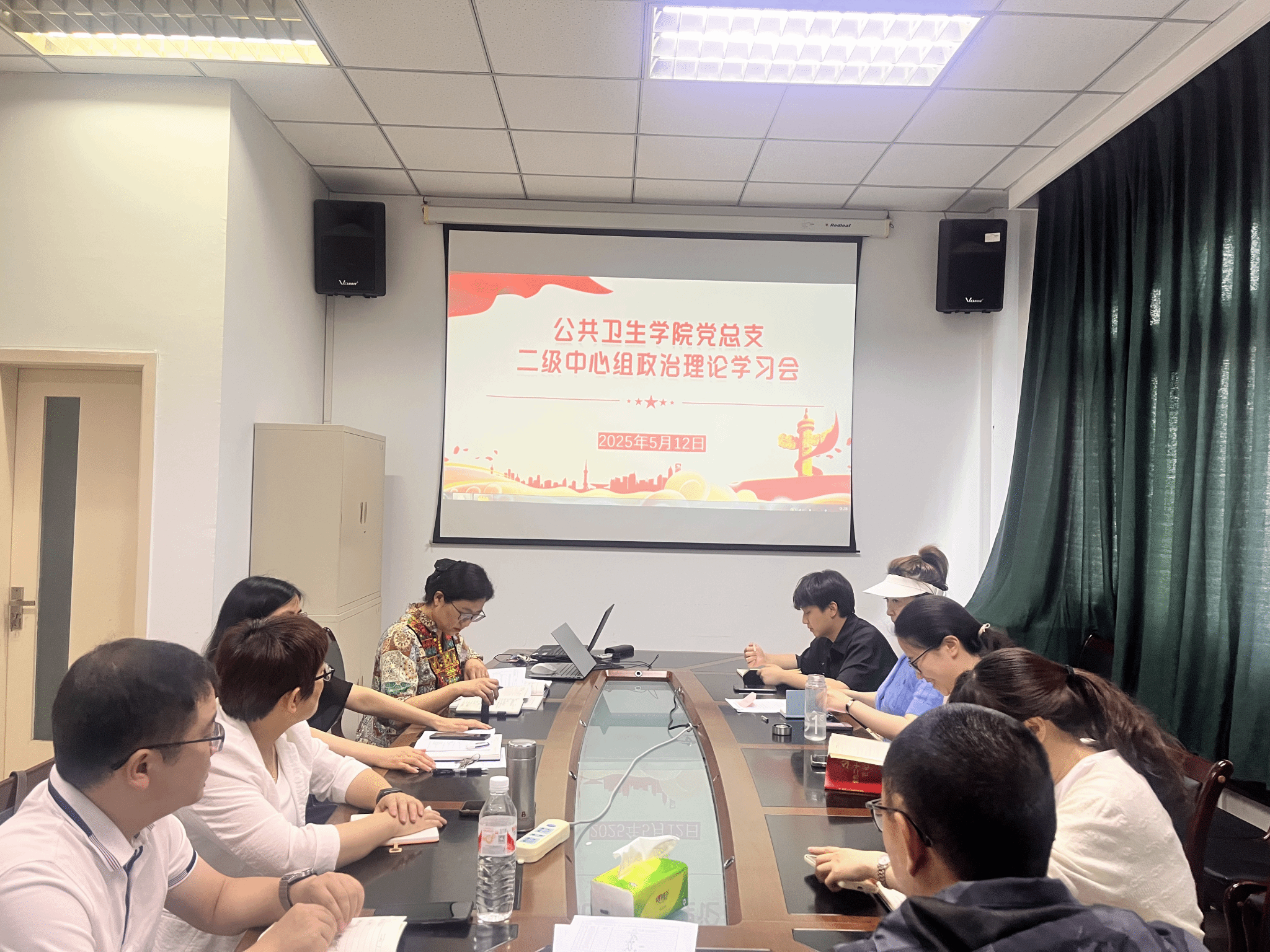 5月12日,公共卫生学院党总支在病原中心4楼会议室召开2025年第4次二级中心组理论学习会。中心组全体成员参加了会议。会议由公共卫生学院党总支书记、院长高晓凤主持。