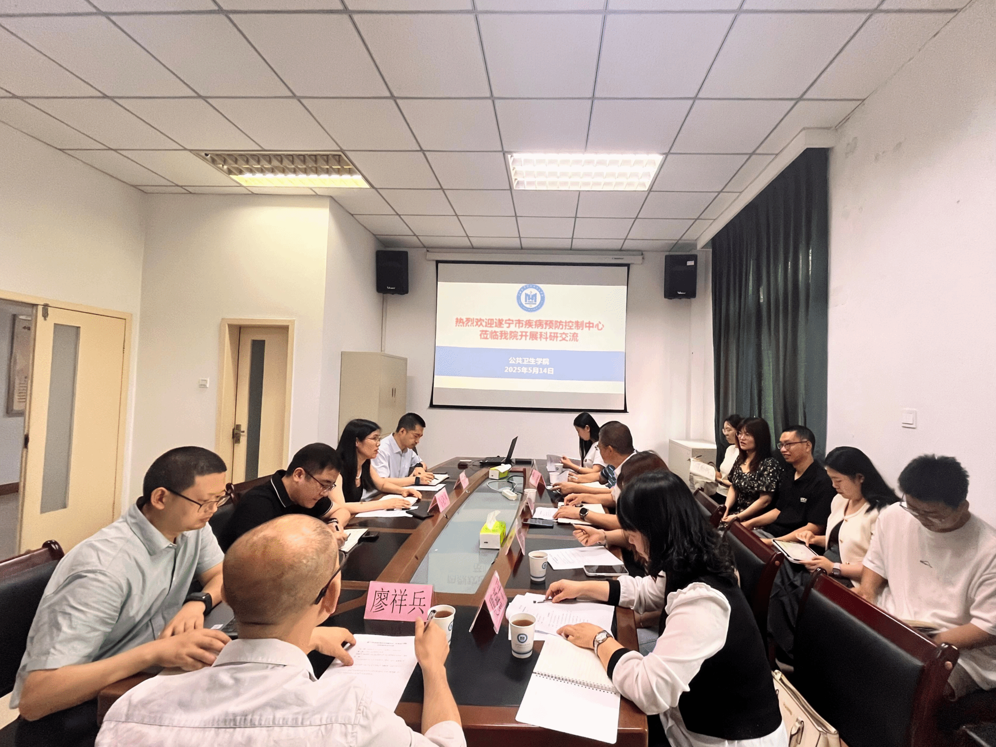 为进一步加强校地合作,促进区域公共卫生事业发展,5月14日上午,遂宁市疾病预防控制中心党总支书记、主任刘文武一行到访公共卫生学院,就科研合作、人才培养等方面开展交流座谈。公共卫生学院领导班子及教师代表参加了座谈会。