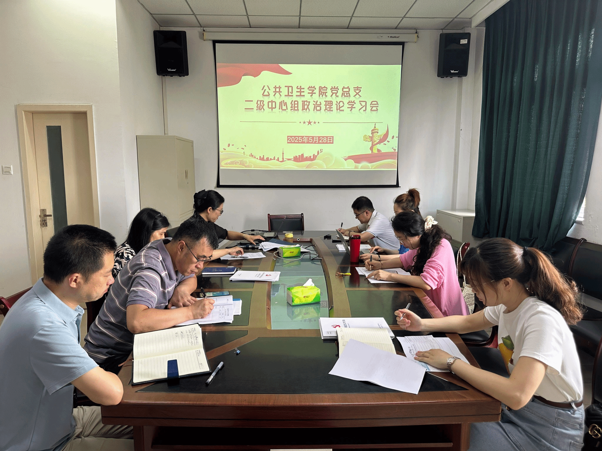 5月28日上午,公共卫生学院党总支在病原中心4楼会议室召开2025年第5次二级中心组理论学习会。中心组全体成员参加了会议。会议由公共卫生学院党总支书记、院长高晓凤主持。会议围绕“十五五”规划编制、爱国统一战线、铸牢中华民族共同体意识及中央八项规定精神等展开专题学习。