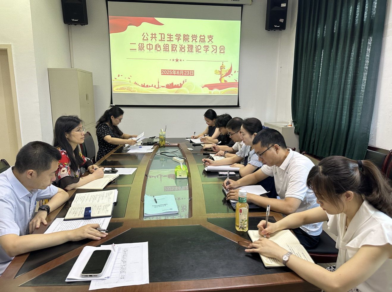 6月23日上午,公共卫生学院党总支在病原中心4楼会议室召开了2025年第6次二级中心组理论学习会。会议由学院党总支书记、院长高晓凤主持,二级中心组全体成员参会。