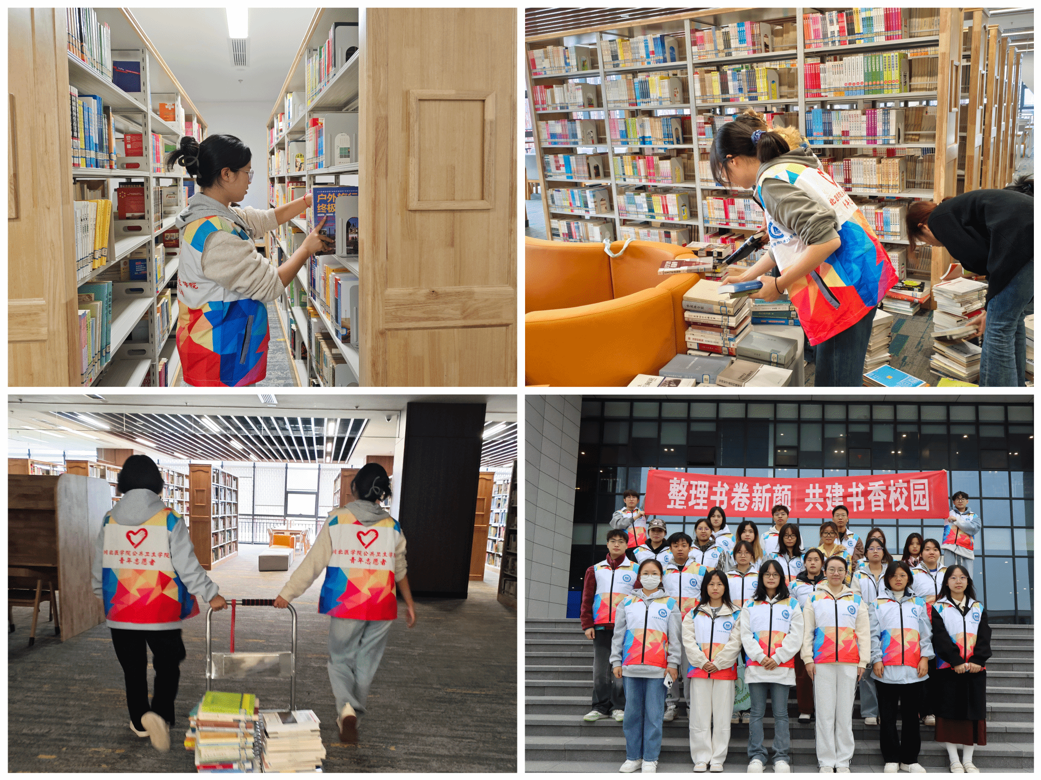 为营造良好学习氛围,共同维护优质阅读环境, 10月26日下午,公共卫生学院组织学生志愿者在临江校区图书馆开展了以“整理书卷新颜,共建书香校园”为主题的志愿服务活动,以实际行动助力书香校园建设。