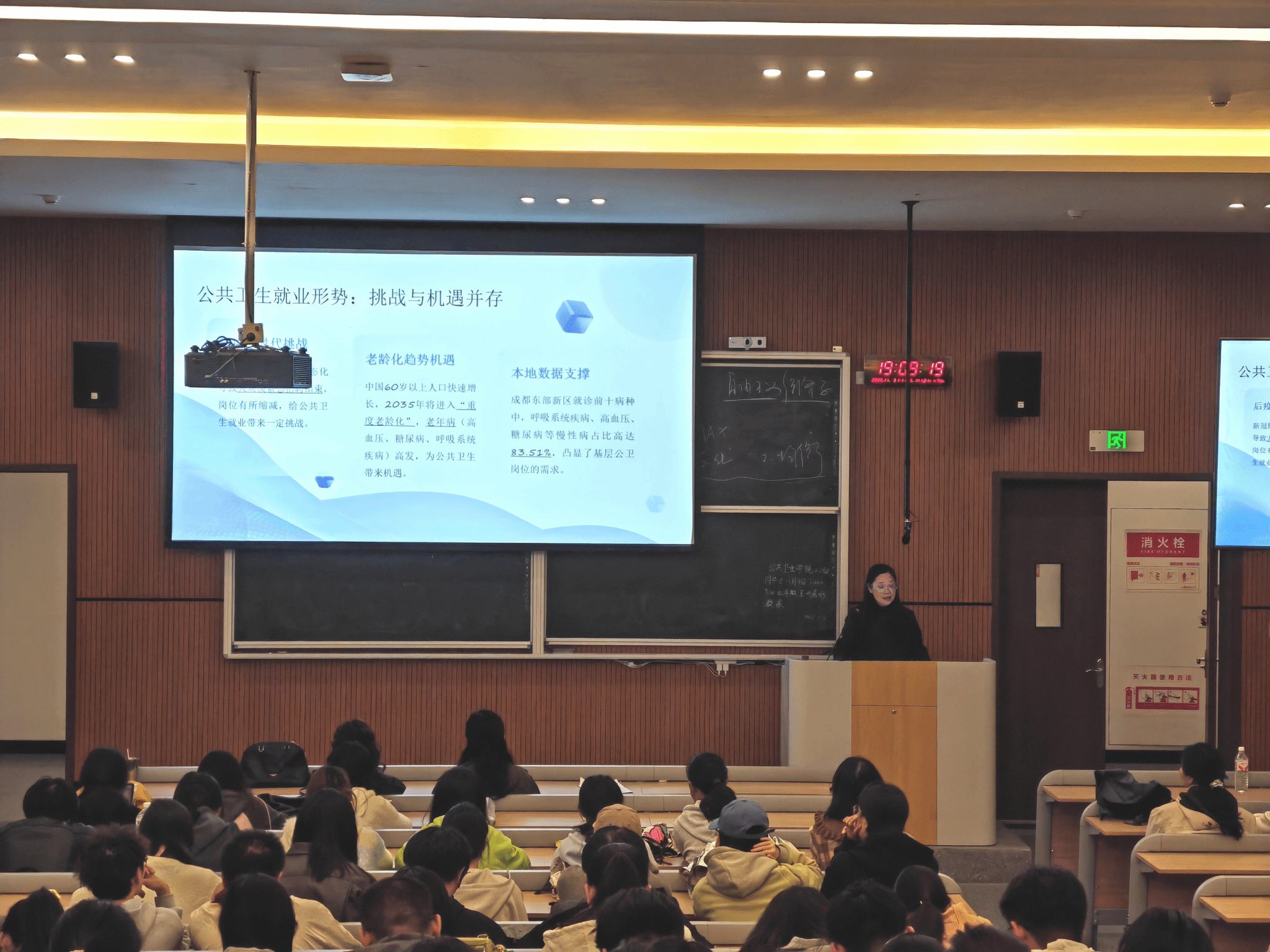 为帮助学生明晰职业航向,增强就业竞争力,11月3日晚,公共卫生学院邀请成都东部新区第二人民医院党委副书记、主任护师杨香来院,在临江书院1号楼北108教室为学院师生开展了以“赋能未来,助力成长——公共卫生就业攻略”专题讲座暨专场招聘宣讲。杨香副书记从事人事工作20余年,拥有丰富公共卫生领域管理经验。
