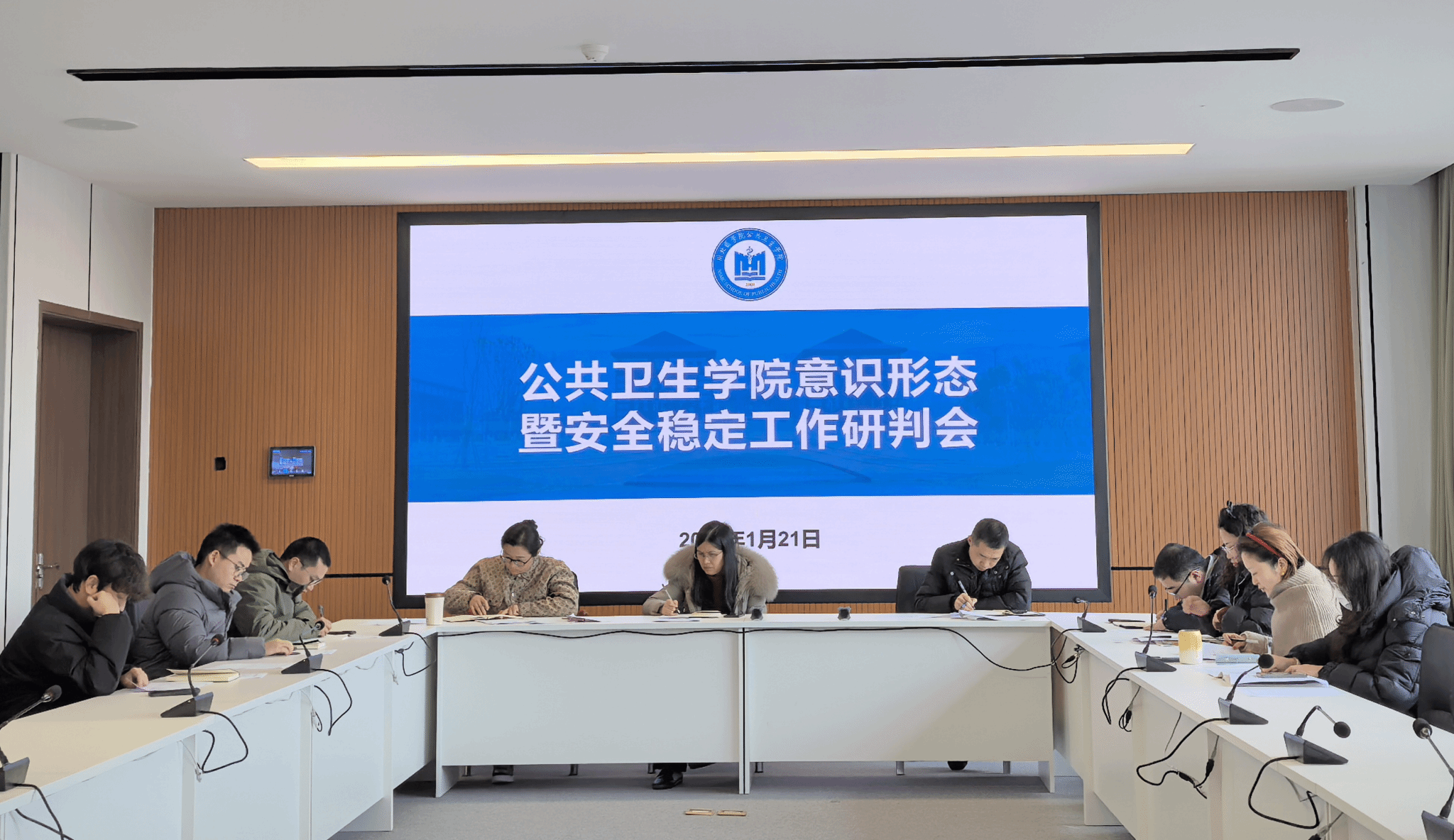 1月21日下午,公共卫生学院在临江书院一号楼南301会议室召开了意识形态暨安全稳定工作研判会。学院领导班子成员、各科室负责人、辅导员、安全员等参加会议。会议由学院党总支书记、院长高晓凤主持。