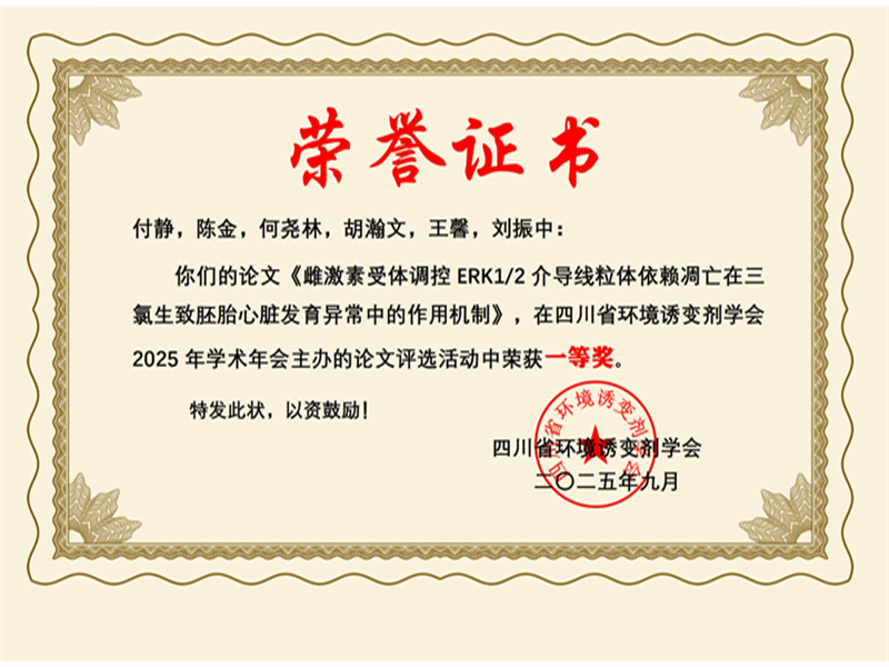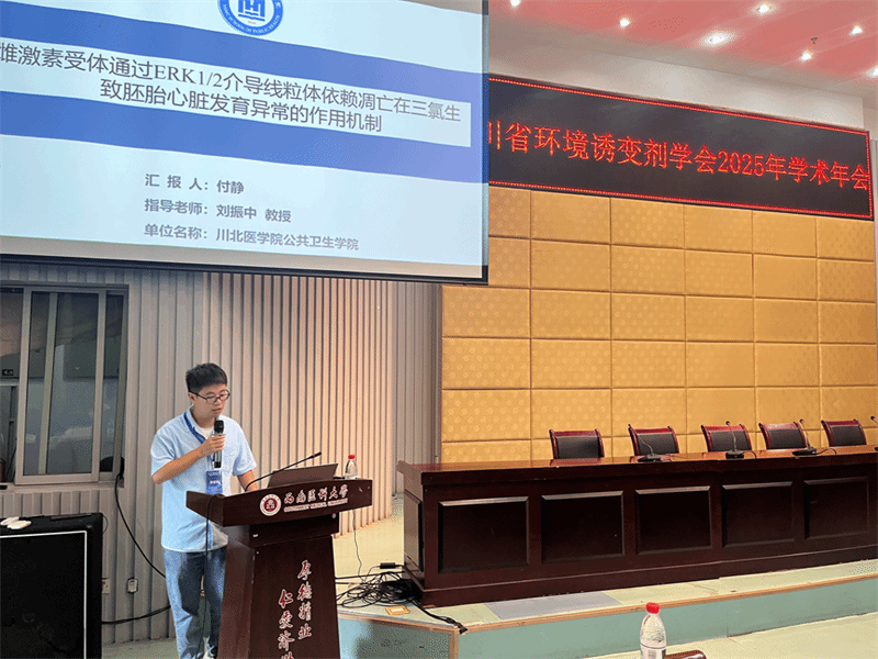 学院培养的研究生付静和陈骁两位同学的研究成果参加了本次学术年会优秀论文评选,付静同学的论文凭借扎实的研究设计、严谨的实验数据与创新的学术视角,获评本次会议“优秀论文一等奖” ,并在大会主会场进行汇报展示;陈骁同学论文获得“优秀论文二等奖”。充分展现了学院在公共卫生领域的科研实力与研究生培养的高质量水平。