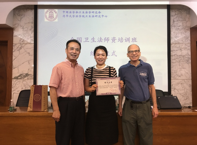 培训结束后,中国卫生法学会副会长沙玉申和美国乔治城大学Lawrence Gostin教授为参会学院颁发了结业证书。