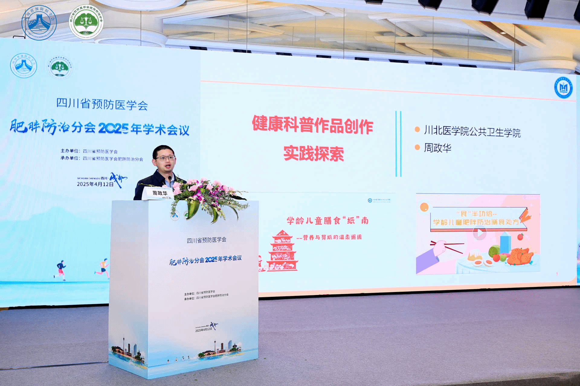 4月12日,四川省预防医学会肥胖防治分会2025年学术年会在成都召开。大会主题为:健康体重,共防慢病。大会围绕中国慢性病流行状况及防控策略和措施、人体成分分析在体重管理中的应用、基层肥胖防治现状与对策、基层健康宣教模式、健康科普作品创作等议题报告研讨。我院周政华老师在大会上做了题为“健康科普作品创作实践探索”的报告,主要介绍了川北医学院公共卫生学院老师和学生开展健康科普作品创作与传播工作的情况、健康科普作品创作原则和方法,以及具体案例,并展示了科普短视频《学龄儿童膳食“纸”南——营养与剪纸的温柔邂逅》。