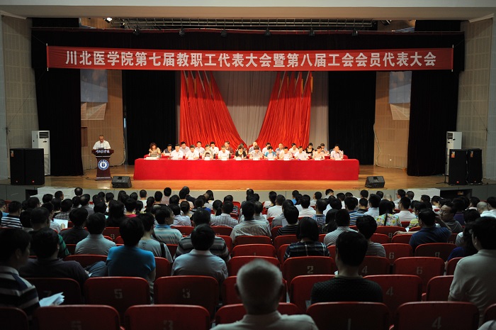6月6日,学校第七届教职工代表大会暨第八届工会会员代表大会在顺庆校区世纪礼堂隆重召开。省教科文卫工会主席黄亚利、省教科文卫工会调研员陈德权,西华师范大学工会常务副主席赵国强,西南石油大学工会常务副主席陈德颉,南充市总工会党组成员、纪检组长、女工委主任周娟,学校领导李成军、康健、杜勇、李健、雷军、张小明、罗加福,学校老领导张春霞以及教代会主席团其他成员在主席台就坐。教代会正式代表和列席代表参加了会议。大会由学校党委副书记杜勇主持。