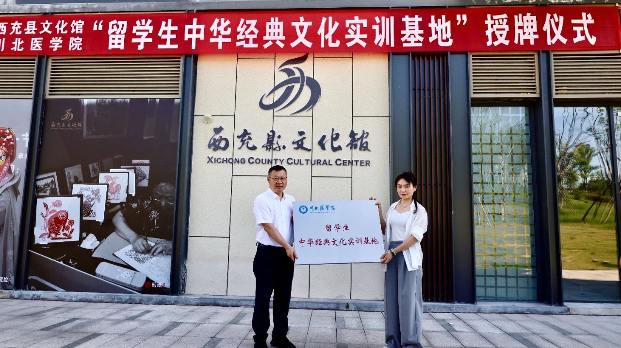 川北医学院与西充县文化馆成功举行来华留学生 中华经典文化实训基地授牌仪式2025-07-07文:屈韵 图:西充县融媒体 审核:肖凤玲7月4日上午,川北医学院与西充县文化馆在西充充国里·有机生活街区西充县文化馆成功举行来华留学生中华经典文化实训基地挂牌仪式。学校党委副书记、工会主席黄平,校地合作处副处长熊翼,西充县人民政府副县长李莉,国际教育交流学院副院长刘尚清及教师代表,以及来自巴基斯坦、孟加拉、加纳等国的10名留学生代表参加了授牌仪式。黄平在致辞中指出,将依托基地搭建平台,创新打造“文化实训+...