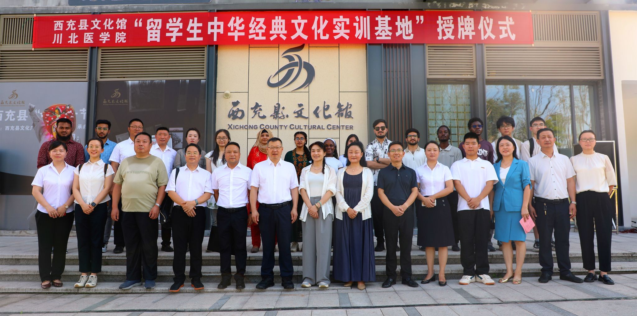 7月4日上午,川北医学院与西充县文化馆在西充充国里·有机生活街区西充县文化馆成功举行来华留学生中华经典文化实训基地挂牌仪式。学校党委副书记、工会主席黄平,校地合作处副处长熊翼,西充县人民政府副县长李莉,国际教育交流学院副院长刘尚清及教师代表,以及来自巴基斯坦、孟加拉、加纳等国的10名留学生代表参加了授牌仪式。