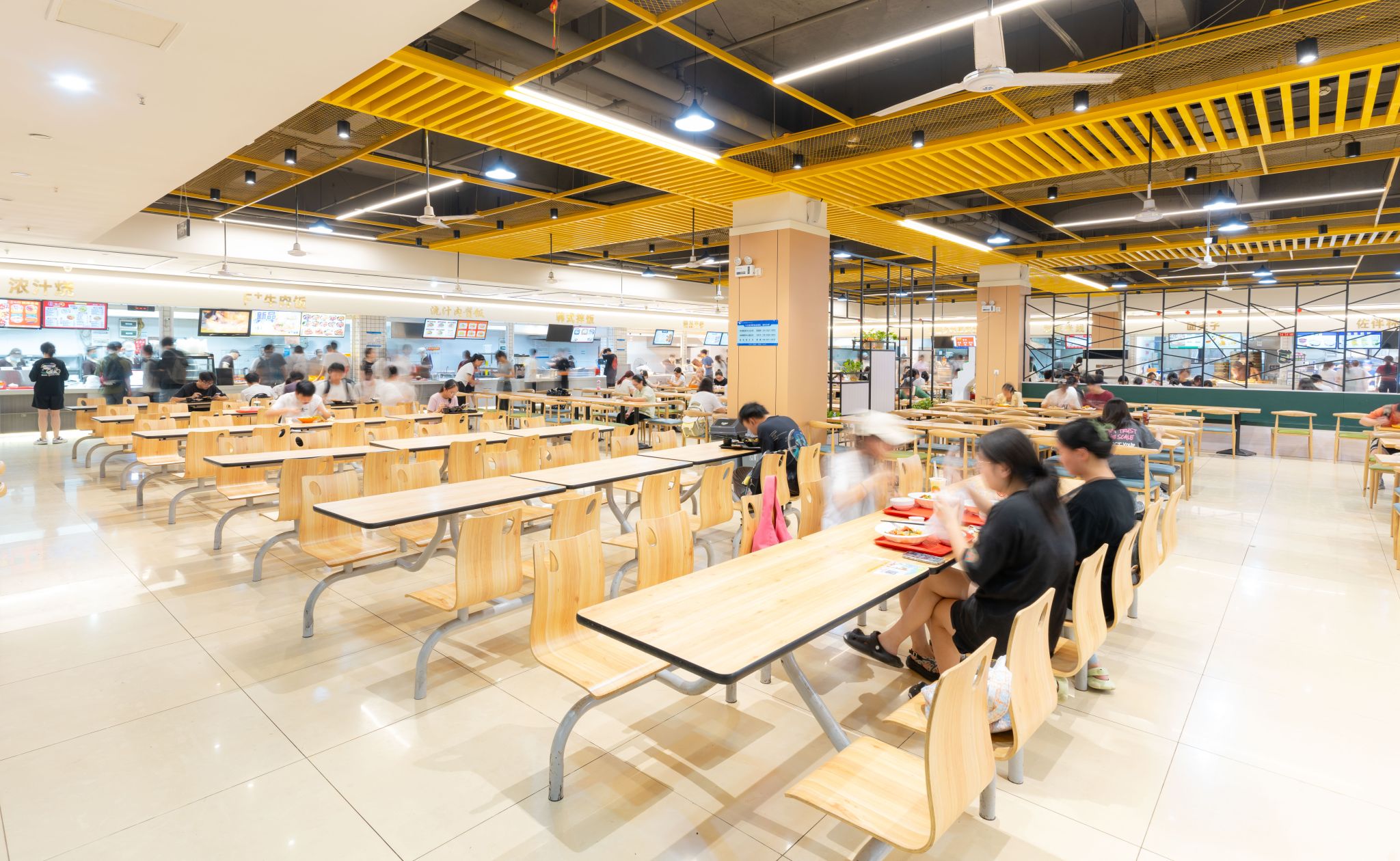 学校共有两个餐厅,雅苑餐厅和千喜鹤餐厅。